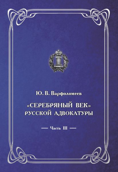 Варфоломеев, Ю. В. «Серебряный век» русской адвокатуры. В 4 частях. Ч.3. «Молодая адвокатура» в общественно-политической и культурной жизни позднеимперской России и русского зарубежья / Ю. В. Варфоломеев. — Саратов : Издательство Саратовского университета, 2023. — 264 c. — ISBN 978-5-292-04837-4. — Текст : электронный // Цифровой образовательный ресурс IPR SMART : [сайт]. — URL: https://www.iprbookshop.ru/137613.html (дата обращения: 26.03.2024). — Режим доступа: для авторизир. пользователей