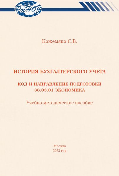 История бухгалтерского учета. Учебно-методическое пособие, код направления учебной дисциплины/специальности 38.03.01 Экономика