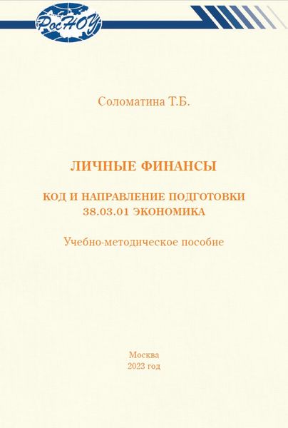 Соломатина, Т. Б. Личные финансы : учебно-методическое пособие, код направления учебной дисциплины/специальности 38.03.01 Экономика / Т. Б. Соломатина. — Москва : Российский новый университет, 2023. — 108 c. — ISBN 978-5-89789-206-8. — Текст : электронный // Цифровой образовательный ресурс IPR SMART : [сайт]. — URL: https://www.iprbookshop.ru/137673.html (дата обращения: 26.03.2024). — Режим доступа: для авторизир. пользователей