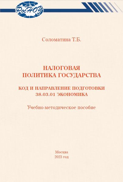 Соломатина Т.Б. Налоговая политика государства : учебно-методическое пособие, код направления учебной дисциплины/специальности 38.04.01 Экономика / Соломатина Т.Б.. — Москва : Российский новый университет, 2023. — 61 c. — ISBN 978-5-89789-207-5. — Текст : электронный // Цифровой образовательный ресурс IPR SMART : [сайт]. — URL: https://www.iprbookshop.ru/137675.html (дата обращения: 06.12.2025). — Режим доступа: для авторизир. пользователей