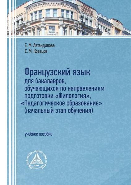 Автандилова, Е. М. Французский язык для бакалавров, обучающихся по направлениям подготовки «Филология», «Педагогическое образование» (начальный этап обучения) : учебное пособие / Е. М. Автандилова, С. М. Кравцов. — Ростов-на-Дону, Таганрог : Издательство Южного федерального университета, 2023. — 124 c. — ISBN 978-5-9275-4564-3. — Текст : электронный // Цифровой образовательный ресурс IPR SMART : [сайт]. — URL: https://www.iprbookshop.ru/138028.html (дата обращения: 03.04.2024). — Режим доступа: для авторизир. пользователей