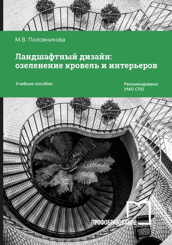 Половникова, М. В. Ландшафтный дизайн: озеленение кровель и интерьеров : учебное пособие для СПО / М. В. Половникова. — 2-е изд. — Саратов, Москва : Профобразование, Ай Пи Ар Медиа, 2024. — 95 c. — ISBN 978-5-4488-1920-9, 978-5-4497-2817-3. — Текст : электронный // Цифровой образовательный ресурс IPR SMART : [сайт]. — URL: https://www.iprbookshop.ru/138131.html (дата обращения: 08.04.2024). — Режим доступа: для авторизир. пользователей