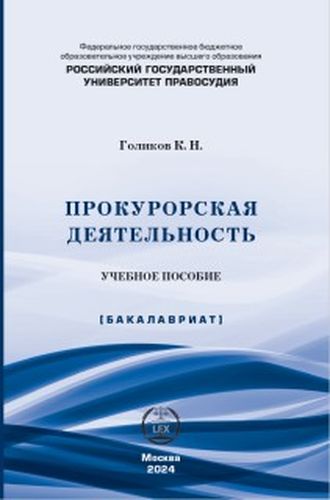 Голиков, К. Н. Прокурорская деятельность : учебное пособие / К. Н. Голиков. — Москва : Российский государственный университет правосудия, 2024. — 144 c. — ISBN 978-5-00209-089-1. — Текст : электронный // Цифровой образовательный ресурс IPR SMART : [сайт]. — URL: https://www.iprbookshop.ru/138174.html (дата обращения: 09.04.2024). — Режим доступа: для авторизир. пользователей