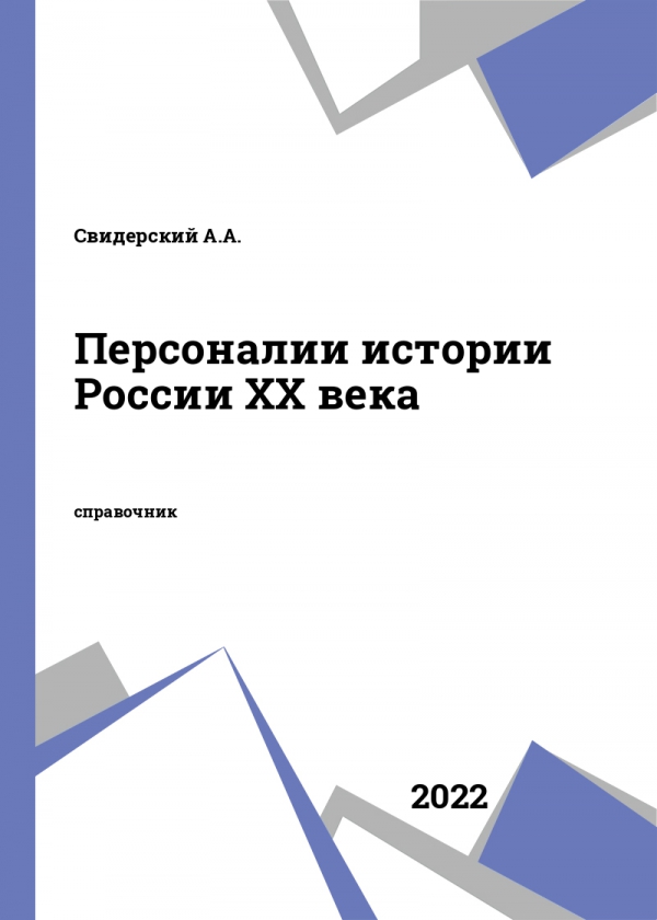 Свидерский А.А. Персоналии истории России XX века / Свидерский А.А.. — Брянск : Брянский государственный аграрный университет, 2022. — 104 c. — Текст : электронный // Цифровой образовательный ресурс IPR SMART : [сайт]. — URL: https://www.iprbookshop.ru/138249.html (дата обращения: 05.12.2025). — Режим доступа: для авторизир. пользователей