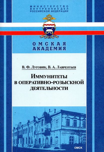 Луговик, В. Ф. Иммунитеты в оперативно-розыскной деятельности : монография / В. Ф. Луговик, В. А. Лаврентьев. — Омск : Омская академия МВД России, 2023. — 124 c. — ISBN 978-5-88651-826-9. — Текст : электронный // Цифровой образовательный ресурс IPR SMART : [сайт]. — URL: https://www.iprbookshop.ru/138416.html (дата обращения: 17.04.2024). — Режим доступа: для авторизир. пользователей