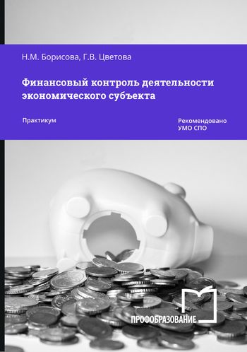 Борисова, Н. М. Финансовый контроль деятельности экономического субъекта : практикум для СПО / Н. М. Борисова, Г. В. Цветова. — 2-е изд. — Саратов, Москва : Профобразование, Ай Пи Ар Медиа, 2024. — 82 c. — ISBN 978-5-4488-1988-9, 978-5-4497-2888-3. — Текст : электронный // Цифровой образовательный ресурс IPR SMART : [сайт]. — URL: https://www.iprbookshop.ru/138468.html (дата обращения: 19.04.2024). — Режим доступа: для авторизир. пользователей