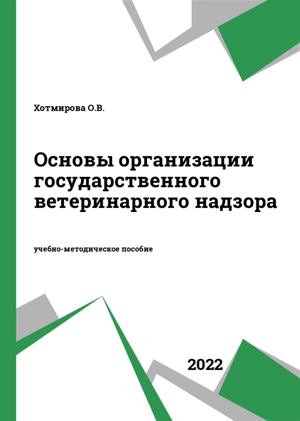 Хотмирова О.В. Основы организации государственного ветеринарного надзора : учебно-методическое пособие для студентов очной и заочной формы обучения, обучающихся по специальности 36.05.01 «Ветеринария» / Хотмирова О.В.. — Брянск : Брянский государственный аграрный университет, 2022. — 38 c. — Текст : электронный // Цифровой образовательный ресурс IPR SMART : [сайт]. — URL: https://www.iprbookshop.ru/138500.html (дата обращения: 15.12.2025). — Режим доступа: для авторизир. пользователей
