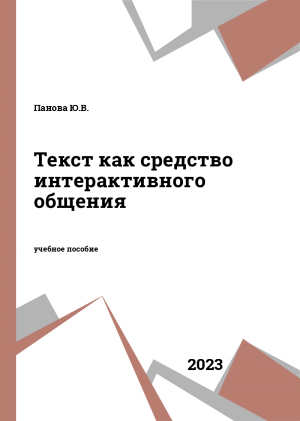 Панова Ю.В. Текст как средство интерактивного общения : учебное пособие / Панова Ю.В.. — Новосибирск : Сибирский государственный университет телекоммуникаций и информатики, 2023. — 82 c. — Текст : электронный // Цифровой образовательный ресурс IPR SMART : [сайт]. — URL: https://www.iprbookshop.ru/138842.html (дата обращения: 06.12.2025). — Режим доступа: для авторизир. пользователей
