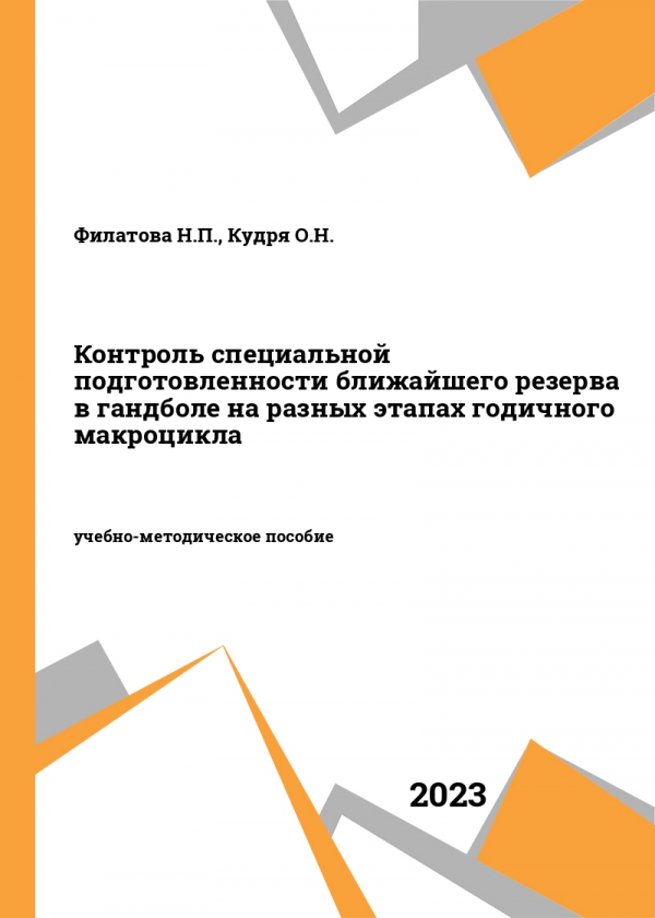 Филатова Н.П. Контроль специальной подготовленности ближайшего резерва в гандболе на разных этапах годичного макроцикла : методические рекомендации / Филатова Н.П., Кудря О.Н.. — Омск : Сибирский государственный университет физической культуры и спорта, 2023. — 102 c. — ISBN 978-5-91-930250-6. — Текст : электронный // Цифровой образовательный ресурс IPR SMART : [сайт]. — URL: https://www.iprbookshop.ru/138863.html (дата обращения: 05.12.2025). — Режим доступа: для авторизир. пользователей