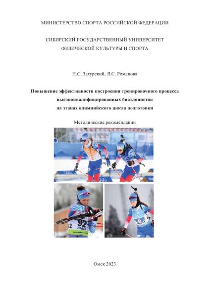 Загурский, Н. С. Повышение эффективности построения тренировочного процесса высококвалифицированных биатлонисток на этапах олимпийского цикла подготовки : методические рекомендации\\\\n / Н. С. Загурский, Я. С. Романова. — Омск : Сибирский государственный университет физической культуры и спорта, 2023. — 112 c. — ISBN 978-5-91-930247-6. — Текст : электронный // Цифровой образовательный ресурс IPR SMART : [сайт]. — URL: https://www.iprbookshop.ru/138867.html (дата обращения: 29.04.2024). — Режим доступа: для авторизир. пользователей