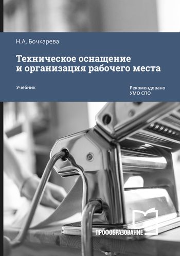 Бочкарева, Н. А. Техническое оснащение и организация рабочего места : учебник для СПО / Н. А. Бочкарева. — 2-е изд. — Саратов, Москва : Профобразование, Ай Пи Ар Медиа, 2024. — 387 c. — ISBN 978-5-4488-2006-9, 978-5-4497-3009-1. — Текст : электронный // Цифровой образовательный ресурс IPR SMART : [сайт]. — URL: https://www.iprbookshop.ru/138893.html (дата обращения: 03.05.2024). — Режим доступа: для авторизир. пользователей