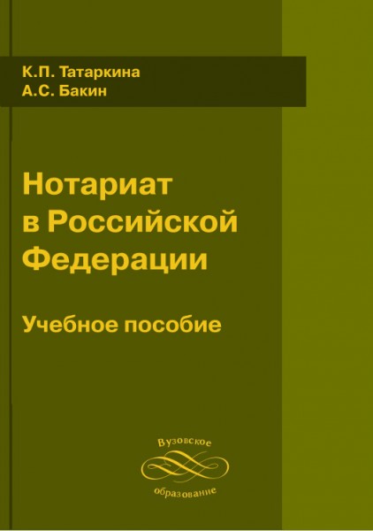 Татаркина, К. П. Нотариат в Российской Федерации : учебное пособие / К. П. Татаркина, А. С. Бакин. — Томск : Томский государственный университет систем управления и радиоэлектроники, Эль Контент, 2012. — 156 c. — ISBN 978-5-4332-0027-2. — Текст : электронный // Цифровой образовательный ресурс IPR SMART : [сайт]. — URL: https://www.iprbookshop.ru/13892.html (дата обращения: 10.07.2025). — Режим доступа: для авторизир. пользователей