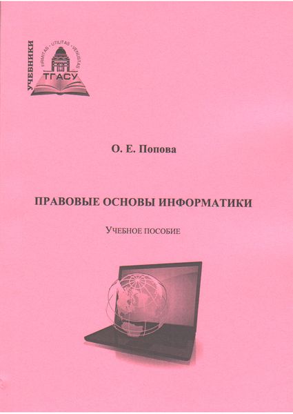 Попова, О. Е. Правовые основы информатики : учебное пособие / О. Е. Попова. — Томск : Томский государственный архитектурно-строительный университет, ЭБС АСВ, 2023. — 124 c. — ISBN 978-5-6049515-5-2. — Текст : электронный // Цифровой образовательный ресурс IPR SMART : [сайт]. — URL: https://www.iprbookshop.ru/139137.html (дата обращения: 13.05.2024). — Режим доступа: для авторизир. пользователей