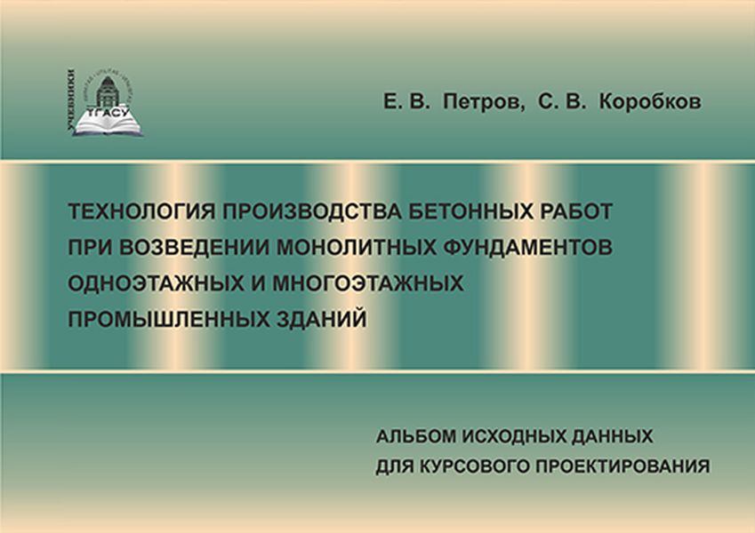 Петров, Е. В. Технология производства бетонных работ при возведении монолитных фундаментов одноэтажных и многоэтажных промышленных зданий. Альбом исходных данных для курсового проектирования : учебное пособие / Е. В. Петров, С. В. Коробков. — Томск : Томский государственный архитектурно-строительный университет, ЭБС АСВ, 2023. — 164 c. — ISBN 978-5-6050245-8-3. — Текст : электронный // Цифровой образовательный ресурс IPR SMART : [сайт]. — URL: https://www.iprbookshop.ru/139146.html (дата обращения: 13.05.2024). — Режим доступа: для авторизир. пользователей