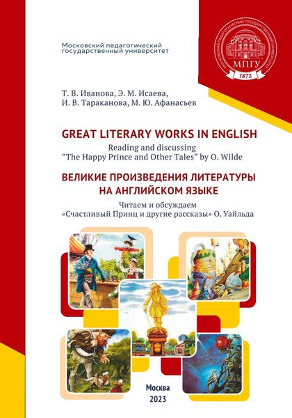 Great Literary Works in English. Reading and discussing «The Happy Prince and Other Tales» by O. Wilde = Великие произведения литературы на английском языке. Читаем и обсуждаем «Счастливый Принц и другие рассказы» О. Уайльда : практикум по домашнему чтению / Т. В. Иванова, Э. М. Исаева, И. В. Тараканова, М. Ю. Афанасьев. — Москва : Московский педагогический государственный университет, 2023. — 88 c. — ISBN 978-5-4263-1172-5. — Текст : электронный // Цифровой образовательный ресурс IPR SMART : [сайт]. — URL: https://www.iprbookshop.ru/139154.html (дата обращения: 13.05.2024). — Режим доступа: для авторизир. пользователей