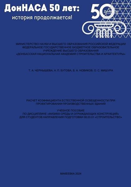 Расчет коэффициента естественной освещенности при проектировании производственных зданий : учебное пособие по дисциплине «Физика среды и ограждающих конструкций» для студентов направления подготовки 08.03.01 «Строительство» / Т. А. Чернышева, А. П. Бутова, Б. А. Новиков, О. С. Мишура. — Макеевка : Донбасская национальная академия строительства и архитектуры, ЭБС АСВ, 2024. — 138 c. — Текст : электронный // Цифровой образовательный ресурс IPR SMART : [сайт]. — URL: https://www.iprbookshop.ru/139432.html (дата обращения: 20.05.2024). — Режим доступа: для авторизир. пользователей