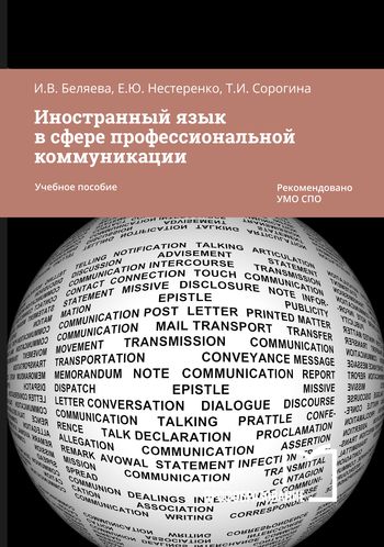 Беляева, И. В. Иностранный язык в сфере профессиональной коммуникации. Комплексные учебные задания : учебное пособие для СПО / И. В. Беляева, Е. Ю. Нестеренко, Т. И. Сорогина ; под редакцией Е. Г. Соболевой. — 3-е изд. — Саратов, Екатеринбург : Профобразование, Уральский федеральный университет, 2024. — 131 c. — ISBN 978-5-4488-0409-0, 978-5-7996-2848-2. — Текст : электронный // Цифровой образовательный ресурс IPR SMART : [сайт]. — URL: https://www.iprbookshop.ru/139535.html (дата обращения: 23.05.2024). — Режим доступа: для авторизир. пользователей