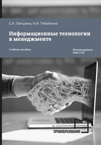 Лапшина С.Н. Информационные технологии в менеджменте : учебное пособие для СПО / Лапшина С.Н., Тебайкина Н.И.. — Саратов, Екатеринбург : Профобразование, Уральский федеральный университет, 2024. — 83 c. — ISBN 978-5-4488-0462-5, 978-5-7996-2862-8. — Текст : электронный // Цифровой образовательный ресурс IPR SMART : [сайт]. — URL: https://www.iprbookshop.ru/139538.html (дата обращения: 20.12.2025). — Режим доступа: для авторизир. пользователей