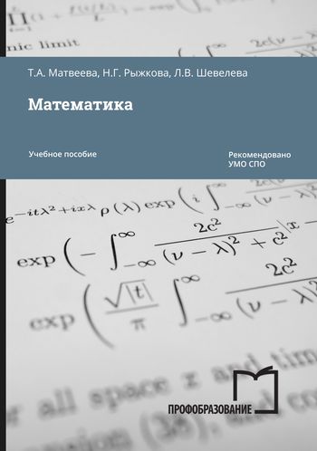 Матвеева, Т. А. Математика : учебное пособие для СПО / Т. А. Матвеева, Н. Г. Рыжкова, Л. В. Шевелева ; под редакцией Д. В. Александрова. — 3-е изд. — Саратов, Екатеринбург : Профобразование, Уральский федеральный университет, 2024. — 215 c. — ISBN 978-5-4488-0397-0, 978-5-7996-2868-0. — Текст : электронный // Цифровой образовательный ресурс IPR SMART : [сайт]. — URL: https://www.iprbookshop.ru/139555.html (дата обращения: 23.05.2024). — Режим доступа: для авторизир. пользователей