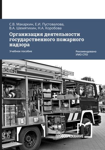 Организация деятельности государственного пожарного надзора : учебное пособие для СПО / С. В. Макаркин, Е. И. Пустовалова, В. А. Шемятихин, Н. А. Коробова ; под редакцией И. В. Клочкова. — 3-е изд. — Саратов, Екатеринбург : Профобразование, Уральский федеральный университет, 2024. — 247 c. — ISBN 978-5-4488-0466-3, 978-5-7996-2822-2. — Текст : электронный // Цифровой образовательный ресурс IPR SMART : [сайт]. — URL: https://www.iprbookshop.ru/139574.html (дата обращения: 23.05.2024). — Режим доступа: для авторизир. пользователей