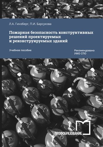 Гинзберг, Л. А. Пожарная безопасность конструктивных решений проектируемых и реконструируемых зданий : учебное пособие для СПО / Л. А. Гинзберг, П. И. Барсукова ; под редакцией Н. Н. Кагановича. — 3-е изд. — Саратов, Екатеринбург : Профобразование, Уральский федеральный университет, 2024. — 53 c. — ISBN 978-5-4488-0419-9, 978-5-7996-2832-1. — Текст : электронный // Цифровой образовательный ресурс IPR SMART : [сайт]. — URL: https://www.iprbookshop.ru/139589.html (дата обращения: 23.05.2024). — Режим доступа: для авторизир. пользователей