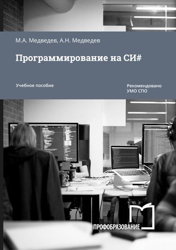Медведев, М. А. Программирование на СИ# : учебное пособие для СПО / М. А. Медведев, А. Н. Медведев ; под редакцией А. В. Присяжного. — 3-е изд. — Саратов, Екатеринбург : Профобразование, Уральский федеральный университет, 2024. — 62 c. — ISBN 978-5-4488-0471-7, 978-5-7996-2833-8. — Текст : электронный // Цифровой образовательный ресурс IPR SMART : [сайт]. — URL: https://www.iprbookshop.ru/139593.html (дата обращения: 23.05.2024). — Режим доступа: для авторизир. пользователей