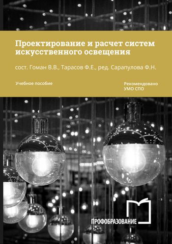 Проектирование и расчет систем искусственного освещения : учебное пособие для СПО / составители В. В. Гоман, Ф. Е. Тарасов, под редакцией Ф. Н. Сарапулова. — 3-е изд. — Саратов, Екатеринбург : Профобразование, Уральский федеральный университет, 2024. — 75 c. — ISBN 978-5-4488-0422-9, 978-5-7996-2910-6. — Текст : электронный // Цифровой образовательный ресурс IPR SMART : [сайт]. — URL: https://www.iprbookshop.ru/139596.html (дата обращения: 23.05.2024). — Режим доступа: для авторизир. пользователей