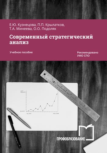 Современный стратегический анализ : учебное пособие для СПО / Е. Ю. Кузнецова, П. П. Крылатков, Т. А. Минеева, О. О. Подоляк ; под редакцией Е. Ю. Кузнецовой. — 3-е изд. — Саратов, Екатеринбург : Профобразование, Уральский федеральный университет, 2024. — 129 c. — ISBN 978-5-4488-0458-8, 978-5-7996-2807-9. — Текст : электронный // Цифровой образовательный ресурс IPR SMART : [сайт]. — URL: https://www.iprbookshop.ru/139612.html (дата обращения: 23.05.2024). — Режим доступа: для авторизир. пользователей