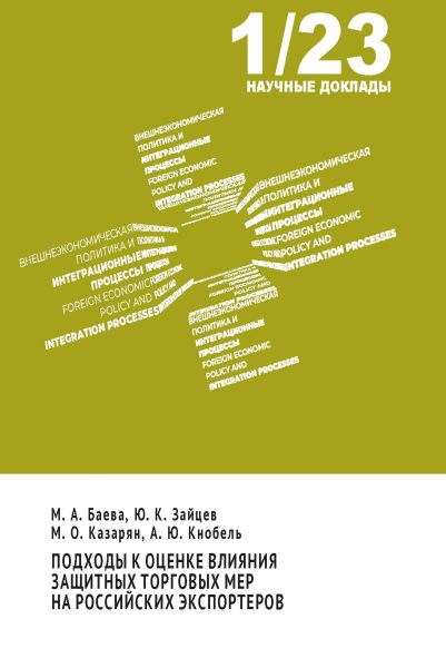 Подходы к оценке влияния защитных торговых мер на российских экспортеров : научный доклад / М. А. Баева, Ю. К. Зайцев, М. О. Казарян, А. Ю. Кнобель. — Москва : Дело, 2023. — 100 c. — ISBN 978-5-85006-456-3. — Текст : электронный // Цифровой образовательный ресурс IPR SMART : [сайт]. — URL: https://www.iprbookshop.ru/139802.html (дата обращения: 27.05.2024). — Режим доступа: для авторизир. пользователей