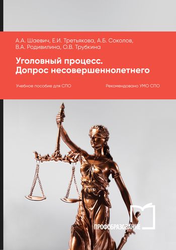 Уголовный процесс. Допрос несовершеннолетнего : учебное пособие для СПО / А. А. Шаевич, Е. И. Третьякова, А. Б. Соколов [и др.]. — Саратов, Москва : Профобразование, Ай Пи Ар Медиа, 2024. — 96 c. — ISBN 978-5-4488-1942-1, 978-5-4497-2833-3. — Текст : электронный // Цифровой образовательный ресурс IPR SMART : [сайт]. — URL: https://www.iprbookshop.ru/140029.html (дата обращения: 13.06.2024). — Режим доступа: для авторизир. пользователей