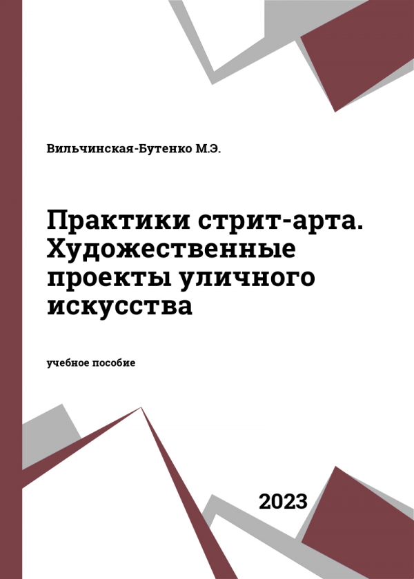 Вильчинская-Бутенко М.Э. Практики стрит-арта. Художественные проекты уличного искусства : учебное пособие для магистрантов / Вильчинская-Бутенко М.Э.. — Санкт-Петербург : Санкт-Петербургский государственный университет промышленных технологий и дизайна, 2023. — 108 c. — ISBN 978-5-7937-2338-1. — Текст : электронный // Цифровой образовательный ресурс IPR SMART : [сайт]. — URL: https://www.iprbookshop.ru/140164.html (дата обращения: 06.12.2025). — Режим доступа: для авторизир. пользователей