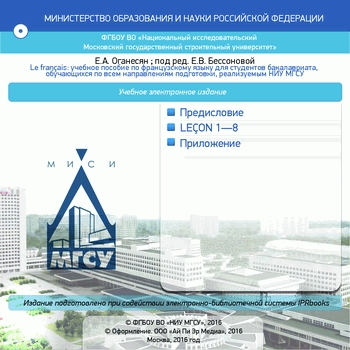 Оганесян, Е. А. Le français : учебное пособие по французскому языку для обучающихся бакалавриата по всем направлениям подготовки, реализуемым НИУ МГСУ / Е. А. Оганесян ; под редакцией Е. В. Бессоновой. — Москва : МИСИ-МГСУ, Ай Пи Ар Медиа, ЭБС АСВ, 2024. — 66 c. — ISBN 978-5-7264-3501-5. — Текст : электронный // Цифровой образовательный ресурс IPR SMART : [сайт]. — URL: https://www.iprbookshop.ru/140463.html (дата обращения: 08.08.2024). — Режим доступа: для авторизир. пользователей
