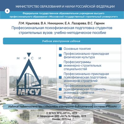 Профессиональная психофизическая подготовка студентов строительных вузов : учебно-методическое пособие / Л.М. Крылова [и др.].. — Москва : МИСИ-МГСУ, Ай Пи Ар Медиа, ЭБС АСВ, 2024. — 326 c. — ISBN 978-5-7264-3489-6. — Текст : электронный // Цифровой образовательный ресурс IPR SMART : [сайт]. — URL: https://www.iprbookshop.ru/140505.html (дата обращения: 05.12.2025). — Режим доступа: для авторизир. пользователей
