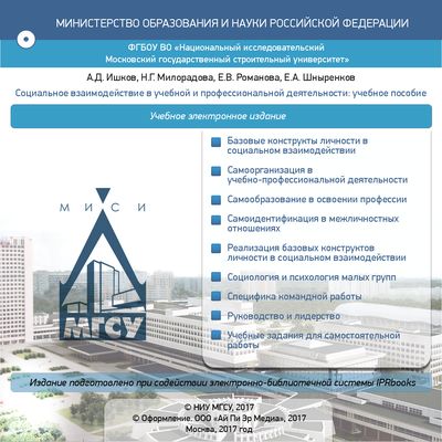 Социальное взаимодействие в учебной и профессиональной деятельности : учебное пособие для обучающихся по направлениям подготовки 08.03.01 Строительство и 15.03.04 Автоматизация технологических процессов и производств / А.Д. Ишков [и др.].. — Москва : МИСИ-МГСУ, Ай Пи Ар Медиа, ЭБС АСВ, 2024. — 129 c. — ISBN 978-5-7264-3482-7. — Текст : электронный // Цифровой образовательный ресурс IPR SMART : [сайт]. — URL: https://www.iprbookshop.ru/140518.html (дата обращения: 05.12.2025). — Режим доступа: для авторизир. пользователей