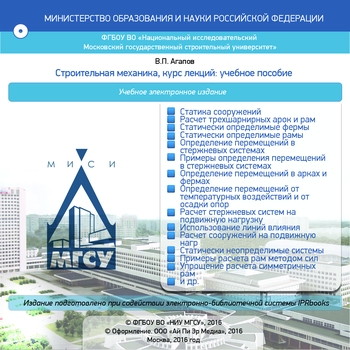 Агапов, В. П. Строительная механика, курс лекций : учебное пособие / В. П. Агапов. — Москва : МИСИ-МГСУ, Ай Пи Ар Медиа, ЭБС АСВ, 2024. — 179 c. — ISBN 978-5-7264-3446-9. — Текст : электронный // Цифровой образовательный ресурс IPR SMART : [сайт]. — URL: https://www.iprbookshop.ru/140523.html (дата обращения: 08.08.2024). — Режим доступа: для авторизир. пользователей