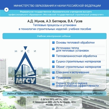 Жуков, А. Д. Тепловые процессы и установки в технологии строительных изделий : учебное пособие / А. Д. Жуков, А. Э. Бегляров, В. А. Гусев. — Москва : МИСИ-МГСУ, Ай Пи Ар Медиа, ЭБС АСВ, 2024. — 252 c. — ISBN 978-5-7264-3498-8. — Текст : электронный // Цифровой образовательный ресурс IPR SMART : [сайт]. — URL: https://www.iprbookshop.ru/140525.html (дата обращения: 08.08.2024). — Режим доступа: для авторизир. пользователей
