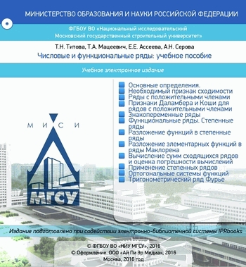 Числовые и функциональные ряды : учебное пособие / Т.Н. Титова [и др.].. — Москва : МИСИ-МГСУ, Ай Пи Ар Медиа, ЭБС АСВ, 2024. — 123 c. — ISBN 978-5-7264-3450-6. — Текст : электронный // Цифровой образовательный ресурс IPR SMART : [сайт]. — URL: https://www.iprbookshop.ru/140544.html (дата обращения: 19.12.2025). — Режим доступа: для авторизир. пользователей