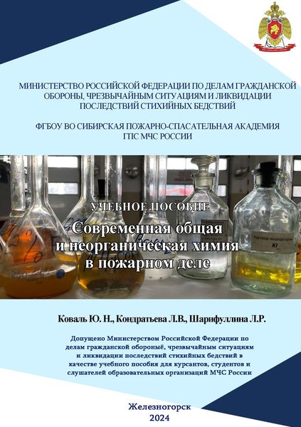 Коваль, Ю. Н. Современная общая и неорганическая химия в пожарном деле : учебное пособие / Ю. Н. Коваль, Л. В. Кондратьева, Л. Р. Шарифуллина. — Железногорск : Сибирская пожарно-спасательная академия ГПС МЧС России, 2024. — 165 c. — Текст : электронный // Цифровой образовательный ресурс IPR SMART : [сайт]. — URL: https://www.iprbookshop.ru/140561.html (дата обращения: 14.06.2024). — Режим доступа: для авторизир. пользователей