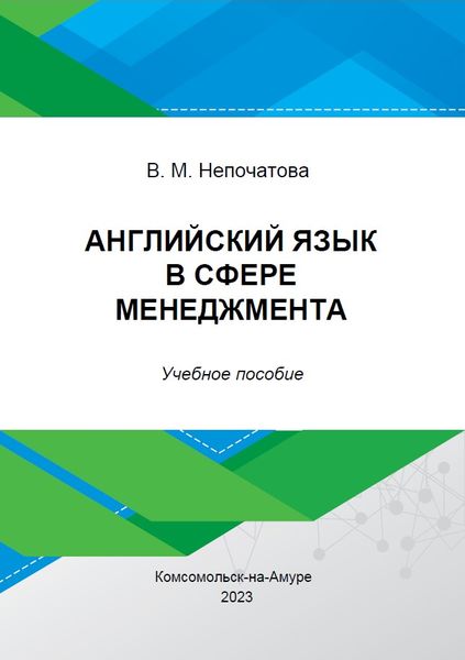 Непочатова, В. М. Английский язык в сфере менеджмента : учебное пособие / В. М. Непочатова. — Комсомольск-на-Амуре : Комсомольский-на-Амуре государственный университет, 2023. — 84 c. — ISBN 978-5-7765-1549-1. — Текст : электронный // Цифровой образовательный ресурс IPR SMART : [сайт]. — URL: https://www.iprbookshop.ru/140639.html (дата обращения: 21.06.2024). — Режим доступа: для авторизир. пользователей