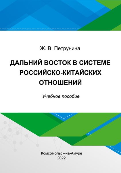 Петрунина, Ж. В. Дальний Восток в системе российско-китайских отношений : учебное пособие / Ж. В. Петрунина. — Комсомольск-на-Амуре : Комсомольский-на-Амуре государственный университет, 2022. — 85 c. — ISBN 978-5-7765-1518-7. — Текст : электронный // Цифровой образовательный ресурс IPR SMART : [сайт]. — URL: https://www.iprbookshop.ru/140643.html (дата обращения: 21.06.2024). — Режим доступа: для авторизир. пользователей