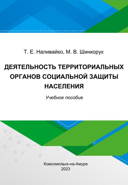 Наливайко, Т. Е. Деятельность территориальных органов социальной защиты населения : учебное пособие / Т. Е. Наливайко, М. В. Шинкорук. — Комсомольск-на-Амуре : Комсомольский-на-Амуре государственный университет, 2023. — 113 c. — ISBN 978-5-7765-1554-5. — Текст : электронный // Цифровой образовательный ресурс IPR SMART : [сайт]. — URL: https://www.iprbookshop.ru/140644.html (дата обращения: 21.06.2024). — Режим доступа: для авторизир. пользователей
