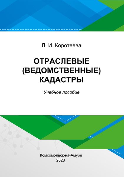 Коротеева, Л. И. Отраслевые (ведомственные) кадастры : учебное пособие / Л. И. Коротеева. — Комсомольск-на-Амуре : Комсомольский-на-Амуре государственный университет, 2023. — 64 c. — ISBN 978-5-7765-1541-5. — Текст : электронный // Цифровой образовательный ресурс IPR SMART : [сайт]. — URL: https://www.iprbookshop.ru/140655.html (дата обращения: 21.06.2024). — Режим доступа: для авторизир. пользователей