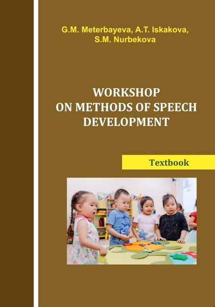 The textbook includes a workshop on methods of speech development, its scientific and theoretical foundations and methods, methods for developing the vocabulary of preschoolers, the formation of the grammatical structure of words, methods for educating the sound culture of words, methods for teaching preschoolers coherent speech, methods for working with fiction, preparing children for literacy, diagnostics of speech development of preschool children, guidelines for sections on speech development in preschool organizations. The textbook «Workshop on methods of speech development» is intended for students and undergraduates studying in the educational program 6B01201-Preschool education and upbringing. And also for teachers and students of pedagogical colleges who are interested in the development of speech in preschool children.