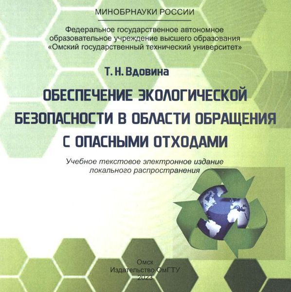 Вдовина, Т. Н. Обеспечение экологической безопасности в области обращения с опасными отходами : учебное пособие / Т. Н. Вдовина. — Омск : Омский государственный технический университет, 2023. — 99 c. — ISBN 978-5-8149-3689-9. — Текст : электронный // Цифровой образовательный ресурс IPR SMART : [сайт]. — URL: https://www.iprbookshop.ru/140844.html (дата обращения: 27.06.2024). — Режим доступа: для авторизир. пользователей