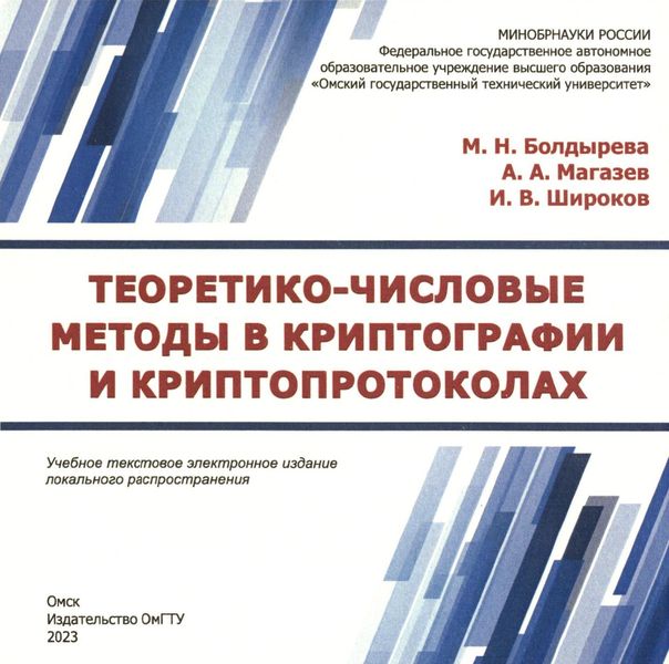 Болдырева, М. Н. Теоретико-числовые методы в криптографии и криптопротоколах : учебное пособие / М. Н. Болдырева, А. А. Магазев, И. В. Широков. — Омск : Омский государственный технический университет, 2023. — 151 c. — ISBN 978-5-8149-3672-1. — Текст : электронный // Цифровой образовательный ресурс IPR SMART : [сайт]. — URL: https://www.iprbookshop.ru/140868.html (дата обращения: 27.06.2024). — Режим доступа: для авторизир. пользователей