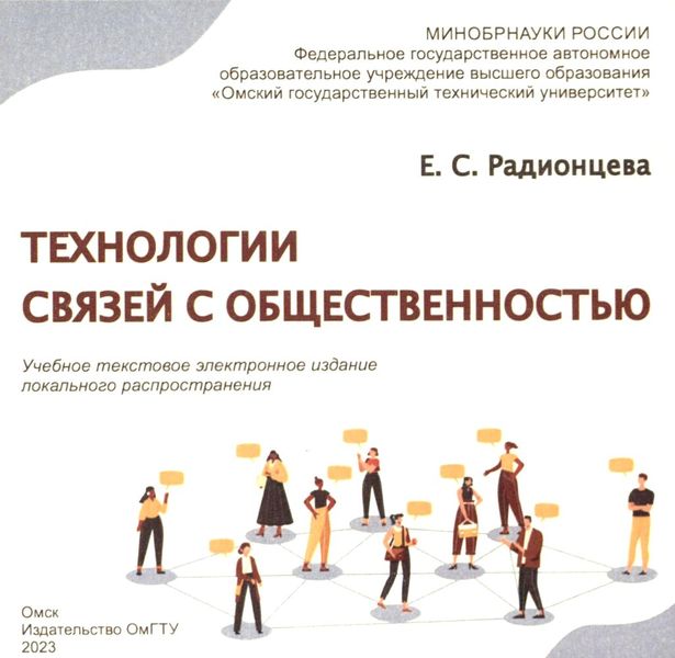 Радионцева, Е. С. Технологии связей с общественностью : учебное пособие / Е. С. Радионцева. — Омск : Омский государственный технический университет, 2023. — 97 c. — ISBN 978-5-8149-3644-8. — Текст : электронный // Цифровой образовательный ресурс IPR SMART : [сайт]. — URL: https://www.iprbookshop.ru/140870.html (дата обращения: 27.06.2024). — Режим доступа: для авторизир. пользователей