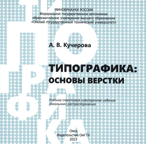 Кучерова, А. В. Типографика: основы верстки : учебное пособие / А. В. Кучерова. — Омск : Омский государственный технический университет, 2023. — 97 c. — ISBN 978-5-8149-3649-3. — Текст : электронный // Цифровой образовательный ресурс IPR SMART : [сайт]. — URL: https://www.iprbookshop.ru/140872.html (дата обращения: 27.06.2024). — Режим доступа: для авторизир. пользователей