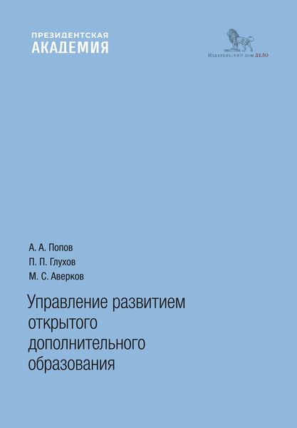 Попов, А. А. Управление развитием открытого дополнительного образования / А. А. Попов, П. П. Глухов, М. С. Аверков. — Москва : Дело, 2024. — 272 c. — ISBN 978-5-85006-556-0. — Текст : электронный // Цифровой образовательный ресурс IPR SMART : [сайт]. — URL: https://www.iprbookshop.ru/140912.html (дата обращения: 02.07.2024). — Режим доступа: для авторизир. пользователей