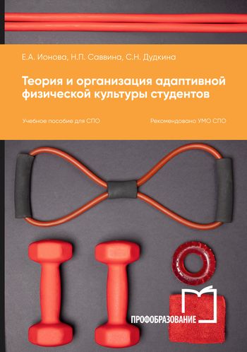 Ионова, Е. А. Теория и организация адаптивной физической культуры студентов : учебное пособие для СПО / Е. А. Ионова, Н. П. Саввина, С. Н. Дудкина. — Липецк, Саратов : Липецкий государственный технический университет, Профобразование, 2024. — 75 c. — ISBN 978-5-00175-270-7, 978-5-4488-2074-8. — Текст : электронный // Цифровой образовательный ресурс IPR SMART : [сайт]. — URL: https://www.iprbookshop.ru/141024.html (дата обращения: 06.08.2024). — Режим доступа: для авторизир. пользователей