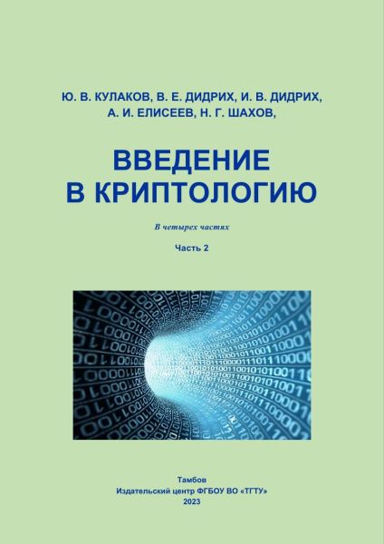 Введение в криптологию. В 4 частях. Ч.2 : учебное пособие / Ю. В. Кулаков, В. Е. Дидрих, И. В. Дидрих [и др.]. — Тамбов : Тамбовский государственный технический университет, ЭБС АСВ, 2023. — 81 c. — ISBN 978-5-8265-2366-7, 978-5-8265-2666-8 (ч.2). — Текст : электронный // Цифровой образовательный ресурс IPR SMART : [сайт]. — URL: https://www.iprbookshop.ru/141037.html (дата обращения: 03.07.2024). — Режим доступа: для авторизир. пользователей